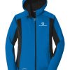 With 3K/3K waterproof, breathability fabric ratings, this knit soft shell has stretch for ease of movement and seamlessly transitions from the workday streets to the weekend trails—regardless of the forecast. Exclusive StormRepel® durable water-repellent (DWR) technology keeps you warmer and drier. Attached hood and princess seams. Front tricot-lined zippered pockets, reverse coil zippers, open cuffs and open hem. Reflective Eddie Bauer logo heat transfer on right hem. Made of 100% polyester knit shell with DWR coating bonded to a water-resistant laminated film insert and 100% polyester brushed microfleece interior.